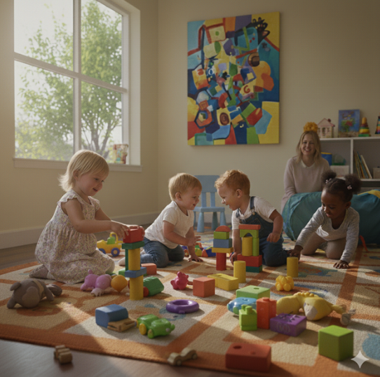 For our new infants, it has been a beautiful time of bonding and connection. Through cuddles, one on one care, and gentle tummy time, they are building trust with their caregivers and growing stronger each day. These quiet moments are just as special, helping our youngest children feel safe, supported, and right at home at Pop-Ins.